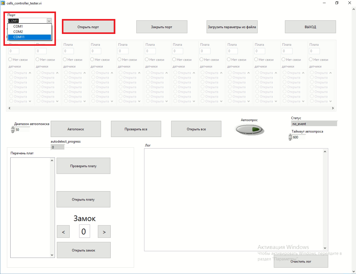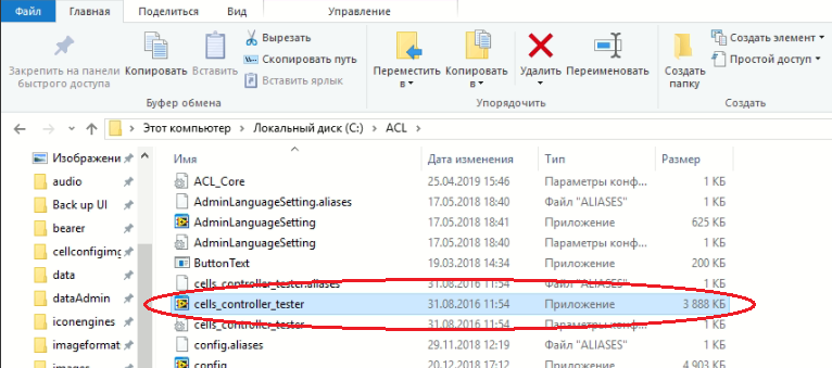 Затем открываем программу cells_controller_tester.exe , которая находится в папке ACL.