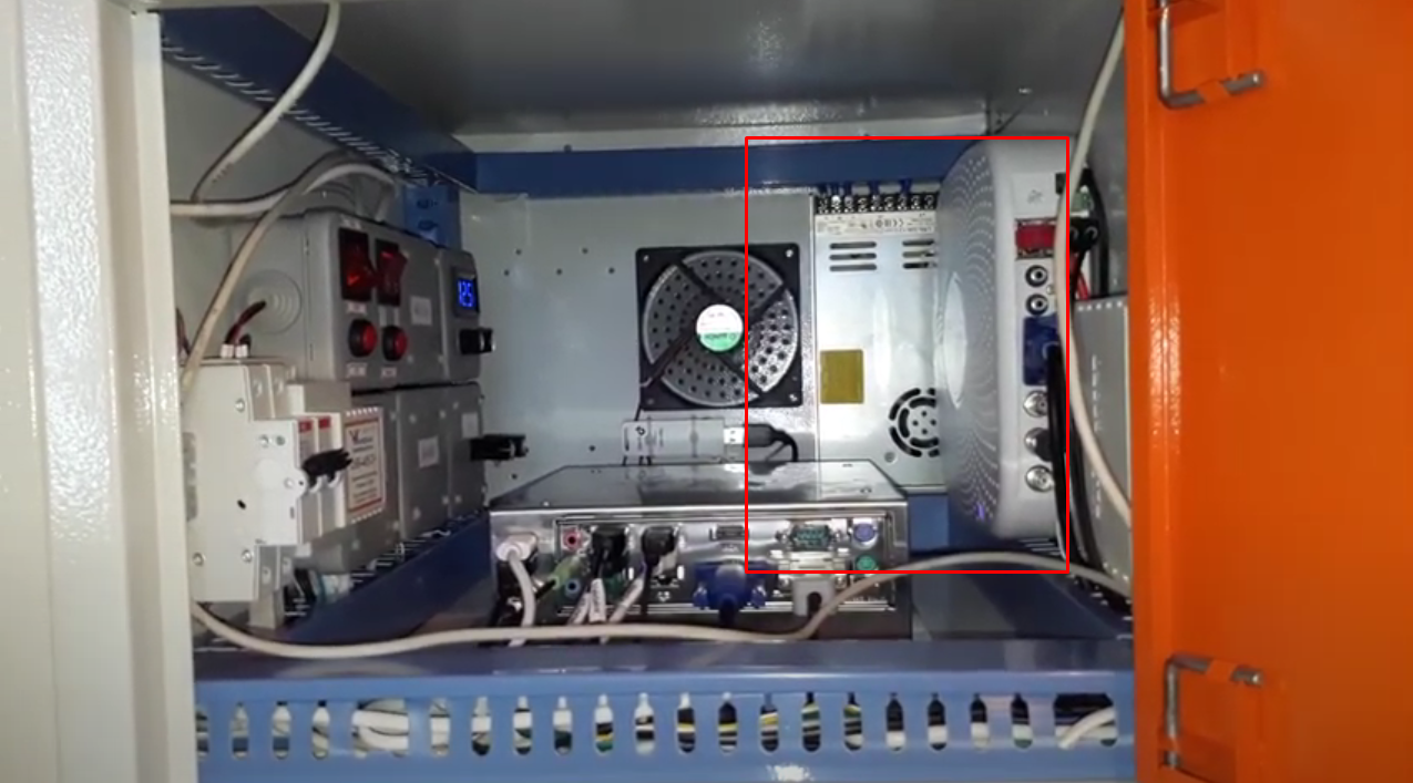 При чем, чаще всего устанавливается повышающий преобразователь 12-24В, на вход которого подается 12 вольт с блока питания. А на выход преобразователя подключается принтер и другие 24В устройства. Для начала нужно обеспечить доступ к 12В БП. Он находится в верхней части блока управления и представляет из себя прямоугольную металлическую коробку.