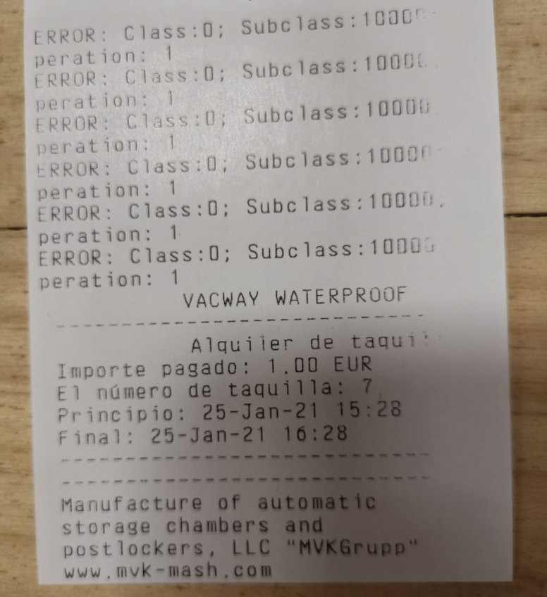 Ошибка в чеке появляется из-за того, что принтер подключен в COM-порт №1 и при перезагрузке комплекса на принтер поступают неправильные данные.