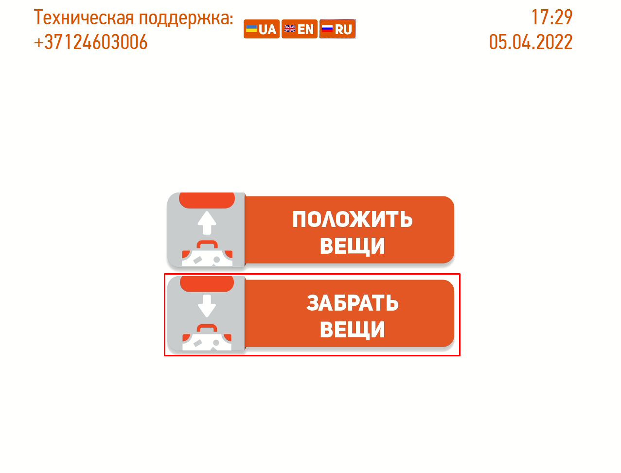 - Зажать на 3 секунды кнопку «Забрать вещи» (Collect stuff)